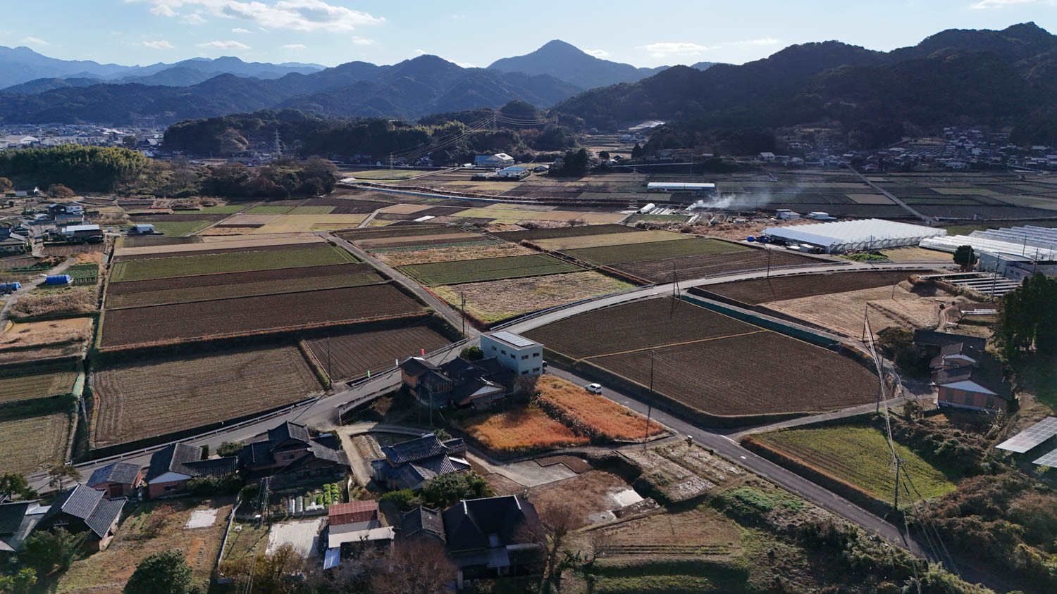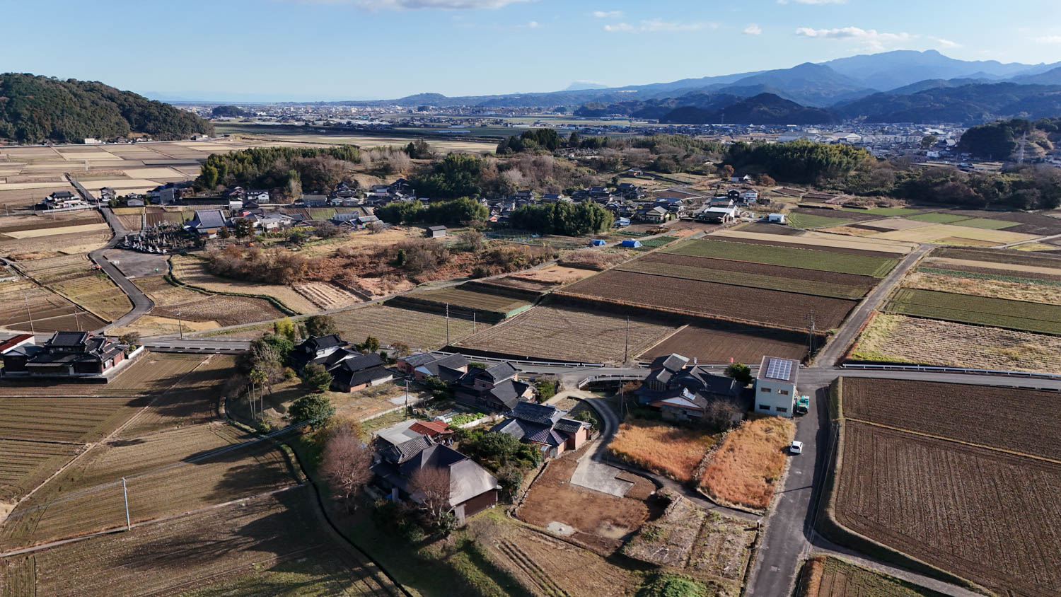 こちらは上空からの様子です。物件は嬉野市役所塩田庁舎から武雄市へ続く国道498号線を少し入り込んだ場所にあります。国道から一歩入り込むと住宅も点々と立ち並び、田園風景も広がります。
