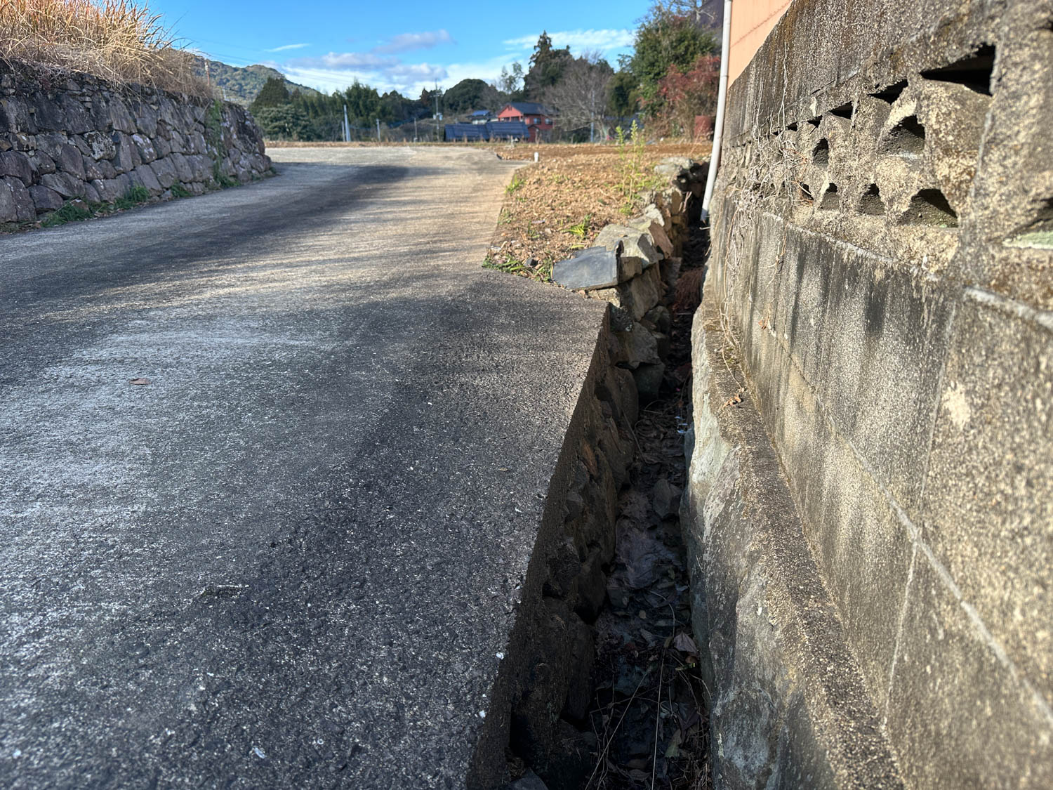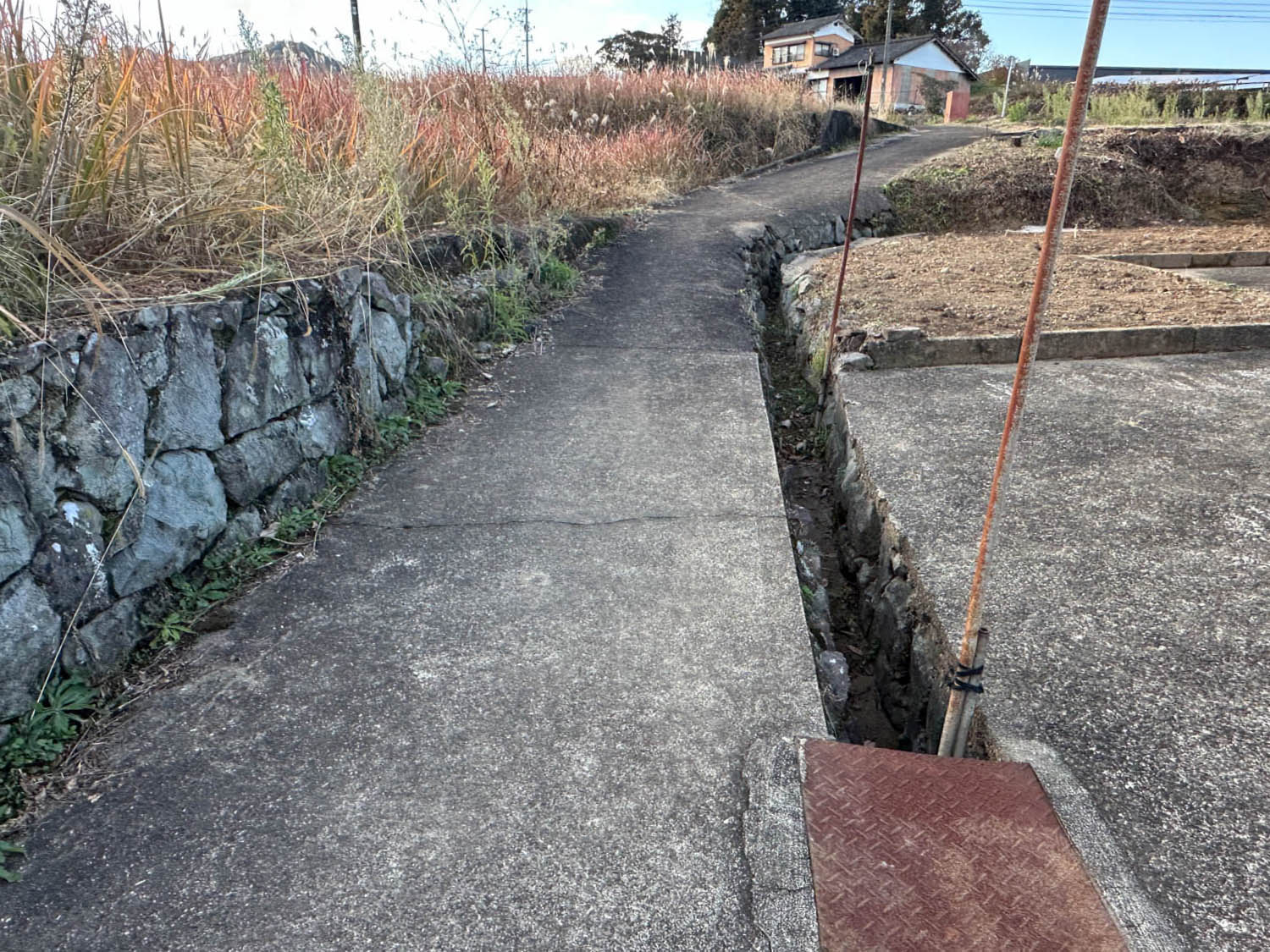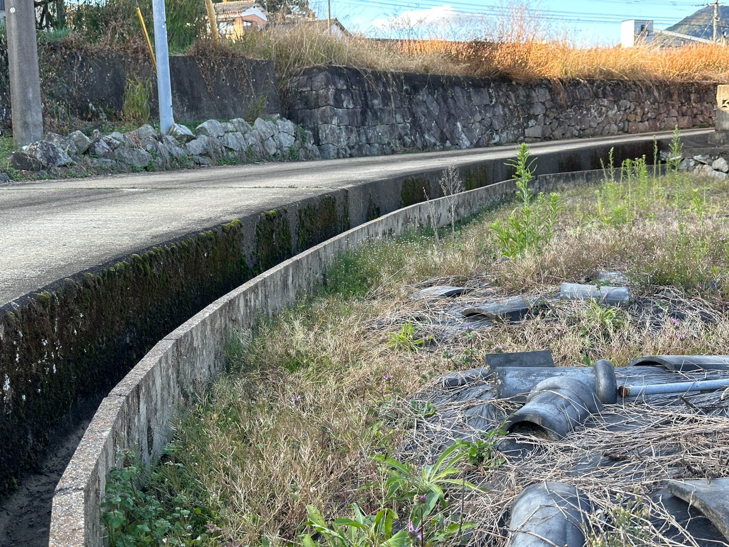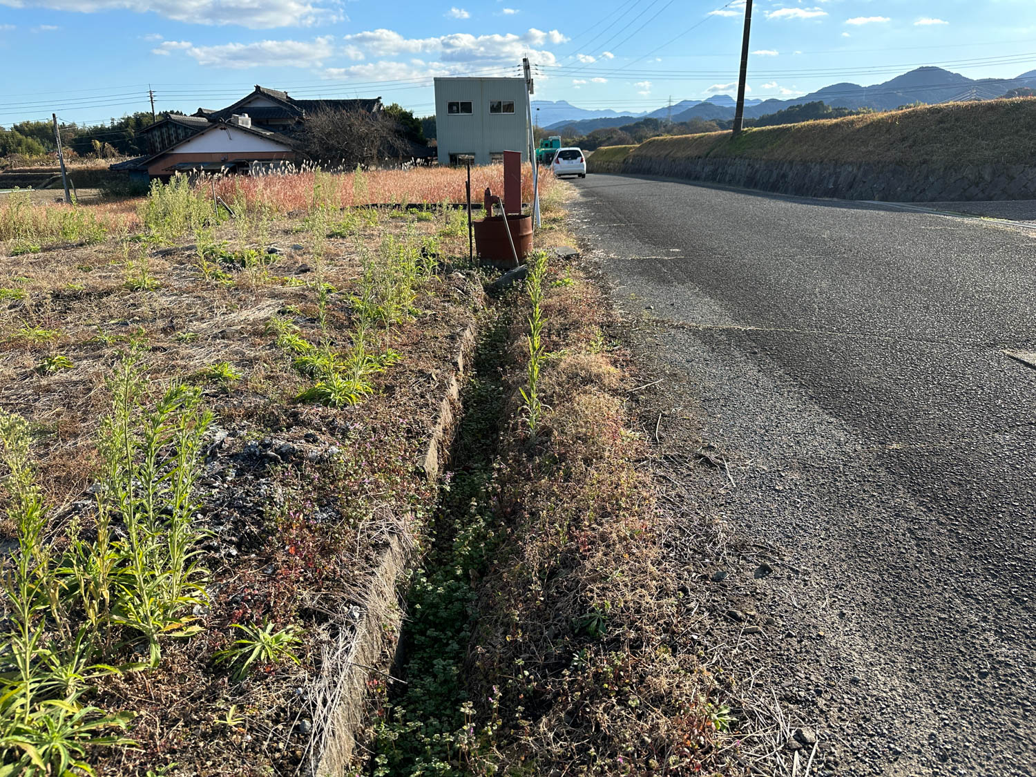 道際には水路が設置されていました。以前は農業用水路として使用されていたようです。