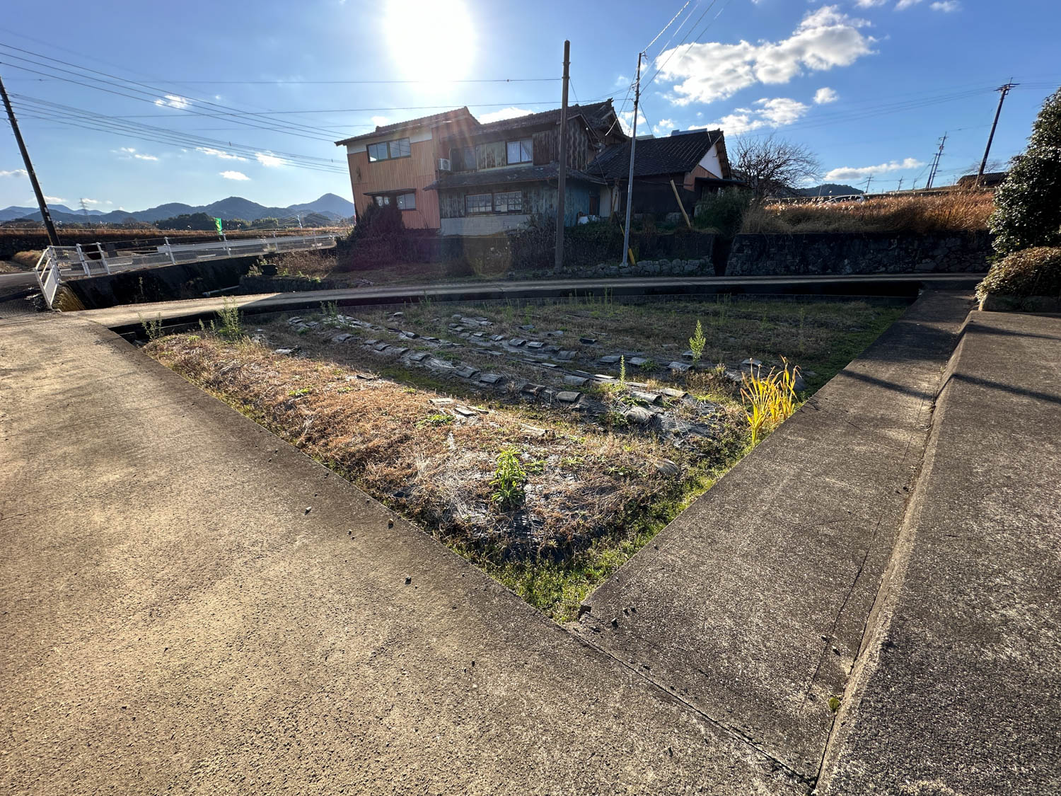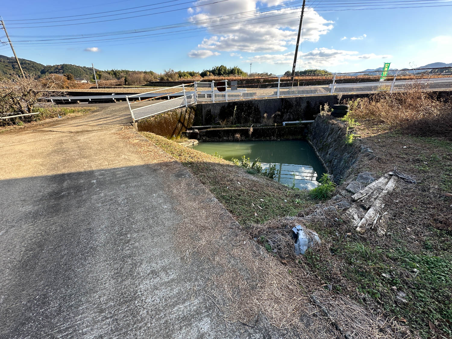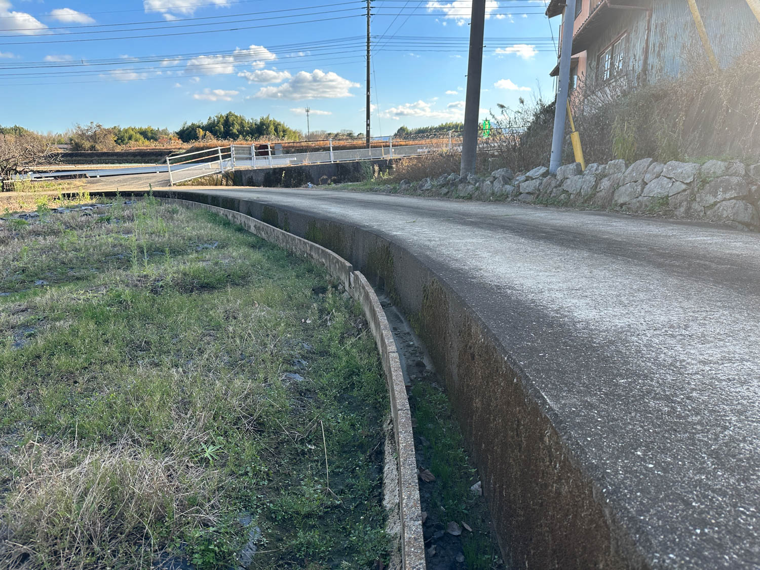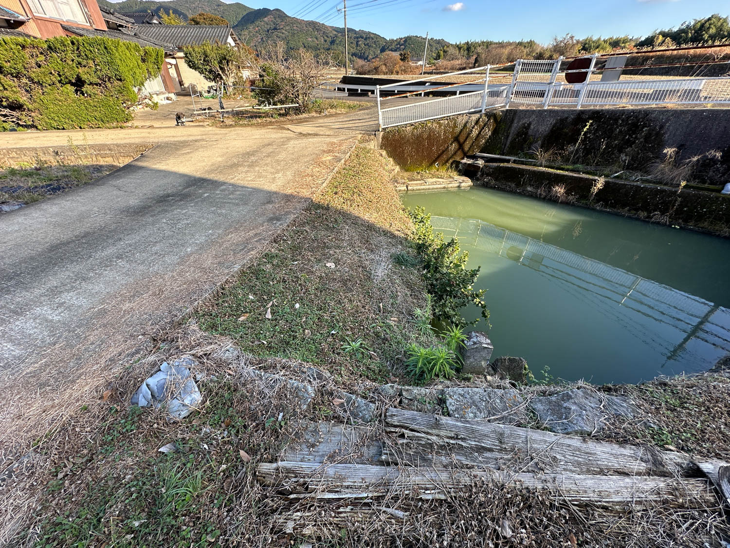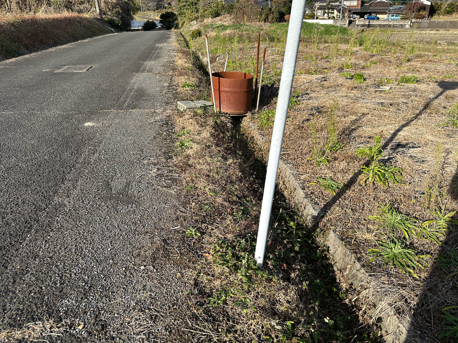 道際には水路が設置されていました。以前は農業用水路として使用されていたようです。