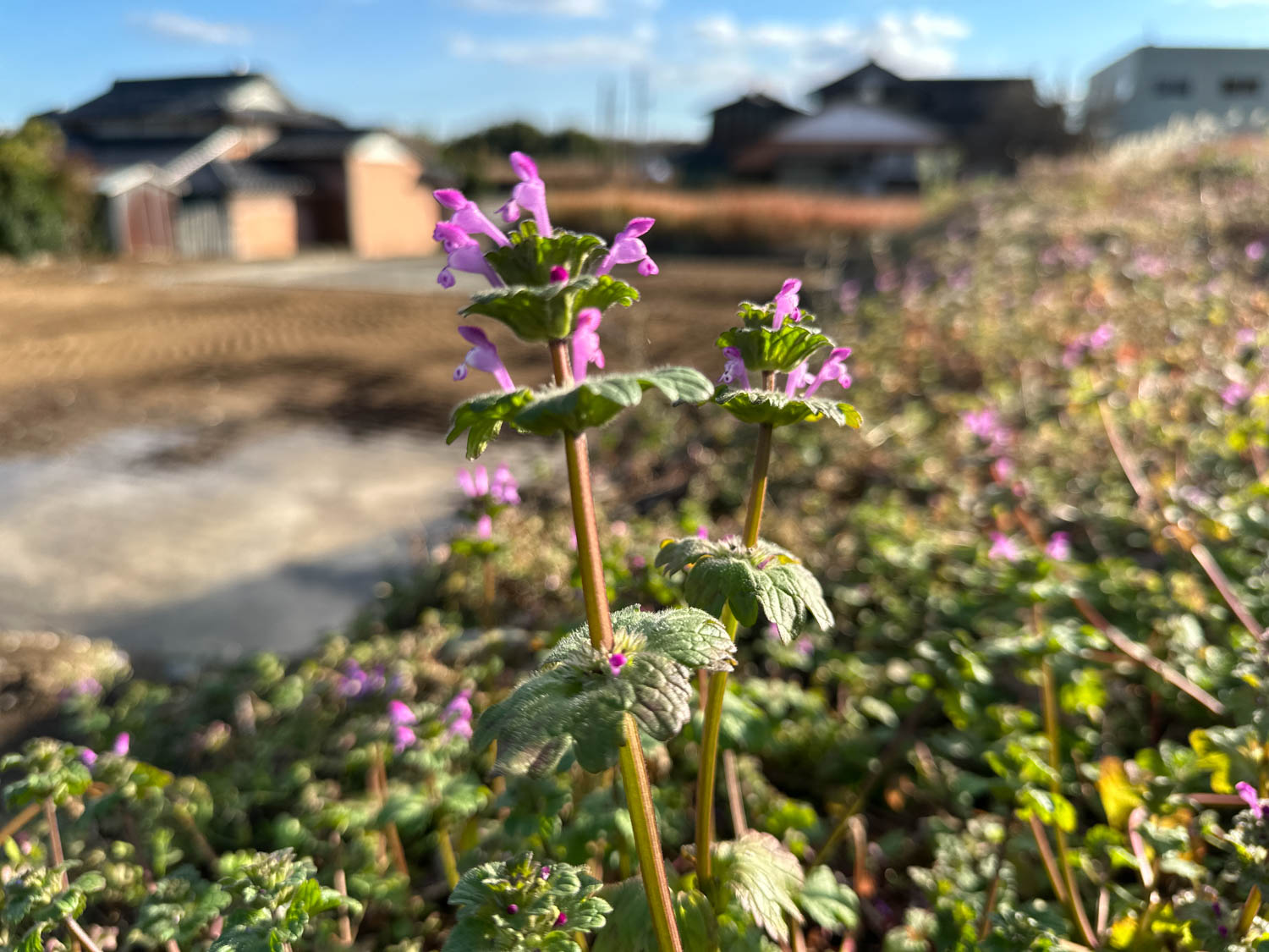 素朴でのどかな風景が広がり、足元には可愛らしい花々の姿も見られます。