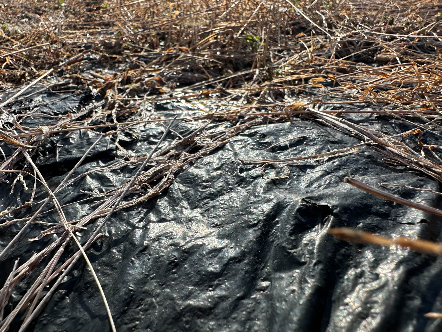 私道と農地との間には水路があります。農地は防草シートが被せられていて、耕作は行われていません。農地として活用される場合は、使用できるまで簡単な整備や開墾作業が必要になりそうですが、その分、少しずつ手を入れながら育てていく楽しみも感じることができそうですね。